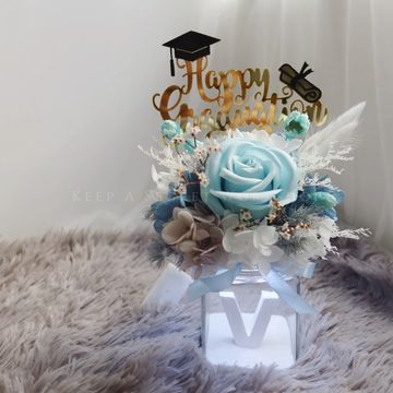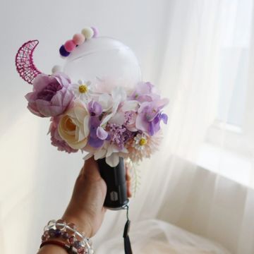 為客人充滿紀念性的應援手燈加人花藝設計,一物兩用,是心愛偶像的應援手燈,也是花藝燈飾擺設。